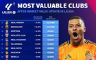 西甲球队身价排行:皇马13.3亿欧居首,巴萨、马竞二三位